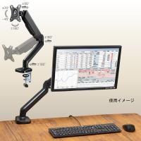 【 特 長 】<br>● パソコンモニターの角度、高さが調整できます<br>● 軽い力でモニターを自由に動かせるガススプリング式<br>● デスク上のスペースの有効活用に<br>● クランプタイプ/グロメットタイプ両用<br>● 17?32インチ対応/耐荷重2?9kg/1面用<br>● アーム可動軸は4軸式<br>● VESAマウントインターフェース規格 75×75mm/100×100mm対応