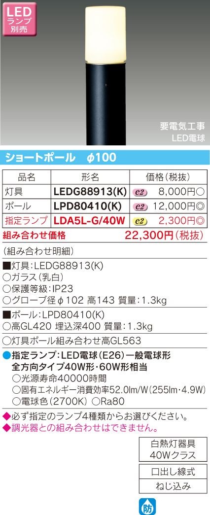 【法人様限定】東芝 LEDガーデンライト・門柱灯(ランプ別売) LEDG88913(K)