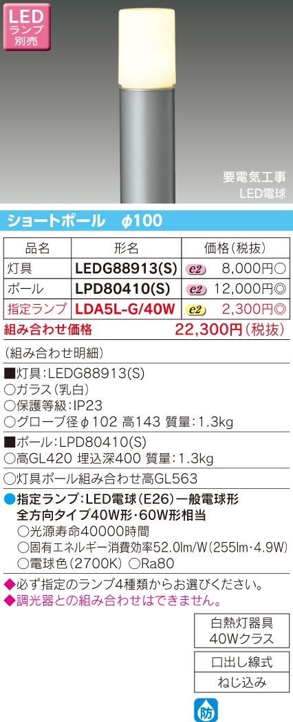 【法人様限定】東芝 LEDガーデンライト・門柱灯(ランプ別売) LEDG88913(S)