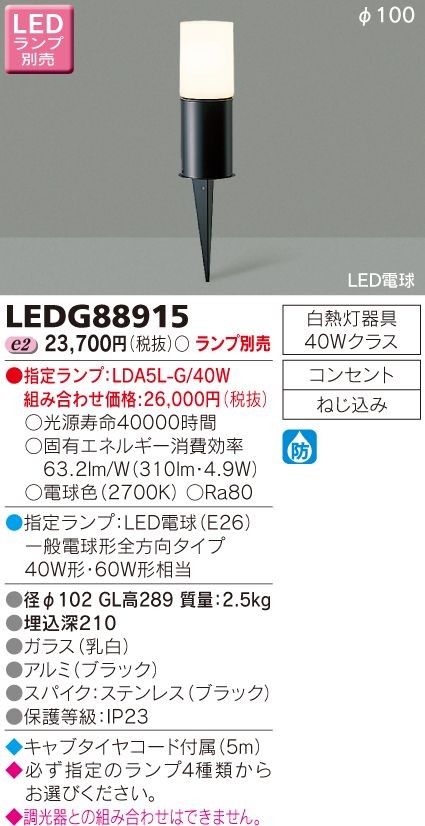 【法人様限定】東芝 LEDガーデンライト・門柱灯(ランプ別売) LEDG88915