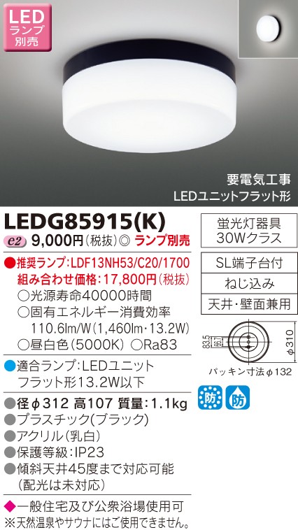 【法人様限定】東芝 LEDアウトドアシーリングライト (ランプ別売) LEDG85915(K)