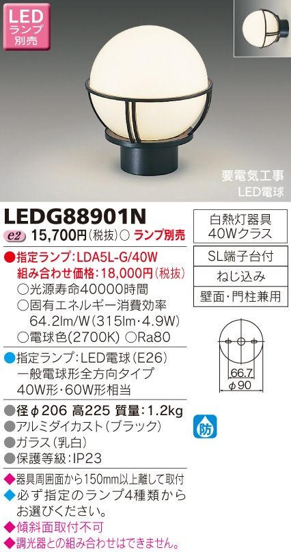 【法人様限定】東芝 LEDガーデンライト・門柱灯(ランプ別売) LEDG88901N