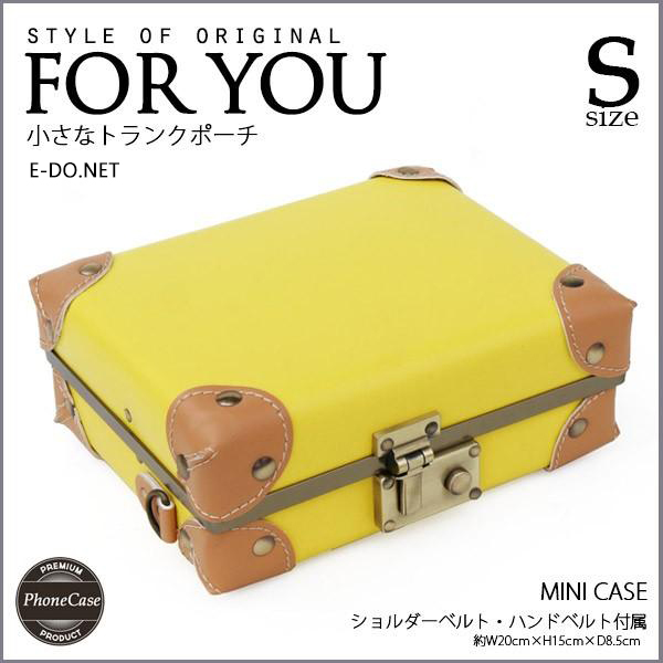 トランクのような可愛いミニポーチ。携帯やちょっとしたお出かけに便利です。旅行先でちょっとご飯にいく時や、デートの時にも◎パスポートがすっぽり入り、カードや内蔵ポケットも豊富にそろえております。付属のショルダーベルトを装着すれば、ショルダーバッグとしても使え、またハンドベルトを装着することも出来ます。内装は仕切りがあり、ゴムベルトも付いております。固定したいものはゴムベルトを活用しましょう。カラフルな色揃えであなたを悩ませます。