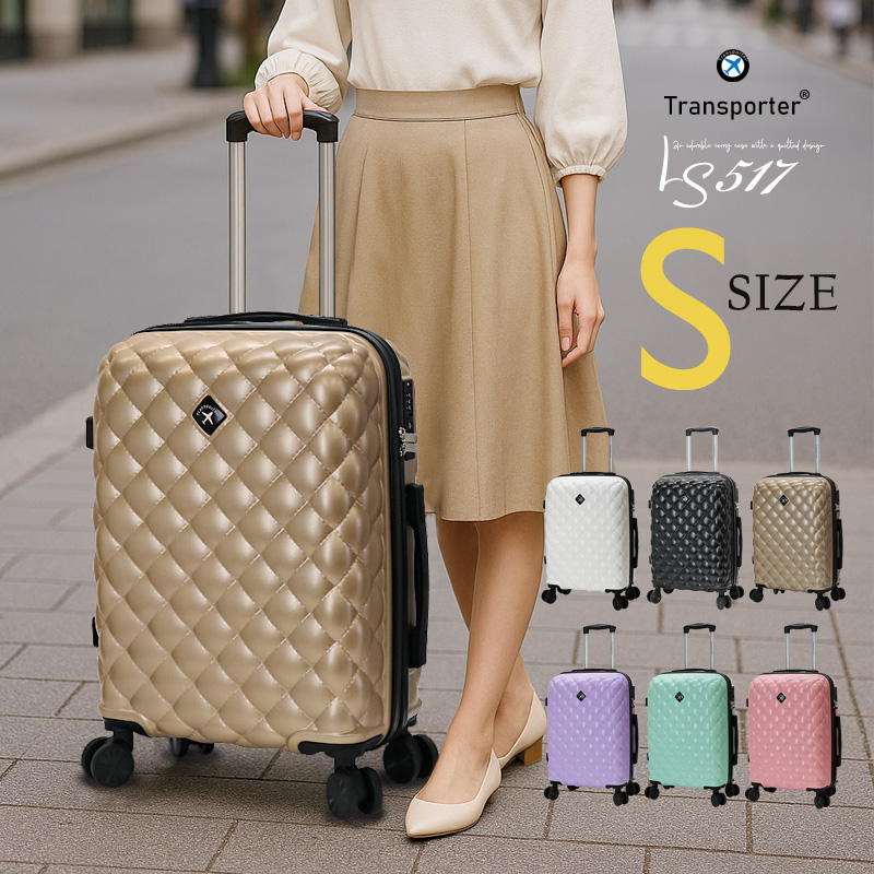 オリジナルブランド「Transporter」から、可愛いキルト風デザインのキャリーケースをご紹介します。 旅行はもちろん普段使いにも最適なこのキャリーケースは、衝撃に強いABS素材を使用し、軽量さと丈夫さを兼ね備えています。移動中のストレスを軽減するために、360°回転するダブルキャスターが装備されており、滑らかな移動を実現します。 さらに、アメリカ圏の旅行に対応したTSAロックを備えており、セキュリティ面でも安心です。カラー展開は6色あり、お好みに合わせて選ぶことができます。サイズ展開はSサイズ、Mサイズ、ミニトランクの3種類を取り揃えており、様々な用途に対応します。 また、使わない時には押し入れに収納することが多いかもしれませんが、「Transporter」のキルト風デザインは可愛らしく、お部屋のインテリアとしてもおしゃれに映えます。その魅力的な外観と実用性で、旅行先でのお供に最適です。 軽量で持ち運びが簡単なこのキャリーケースは、長時間の移動でも快適にご利用いただけます。キルト風のデザインが加える愛らしさと、機能性が兼ね備わった「Transporter」のキャリーケースで、新しい旅の体験をお楽しみください。 【Sサイズについて】※LCC・MCCを除く航空会社で機内持ち込みしていただけます。 また路線、飛行機の種類により機内に持ち込む事が出来ない場合がございますので、予めご了承願います。 ※サイズ計測は平置きにてメジャー計測しております。誤差が生じる場合がございますので、予めご了承ください。 また製造過程にて、金型生産後の組み上げ時に、サイズに個体差が生じる場合がございます。予めご了承ください。 | ||||