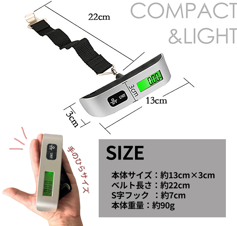 そんなトラブルを防いでくれるのが、こちらのデジタルラゲッジスケール(はかり/ハカリ)です。