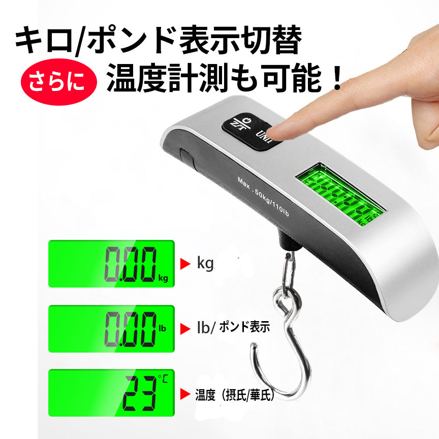 キロ・ポンド表示が可能で、さらに温度計測機能も搭載。