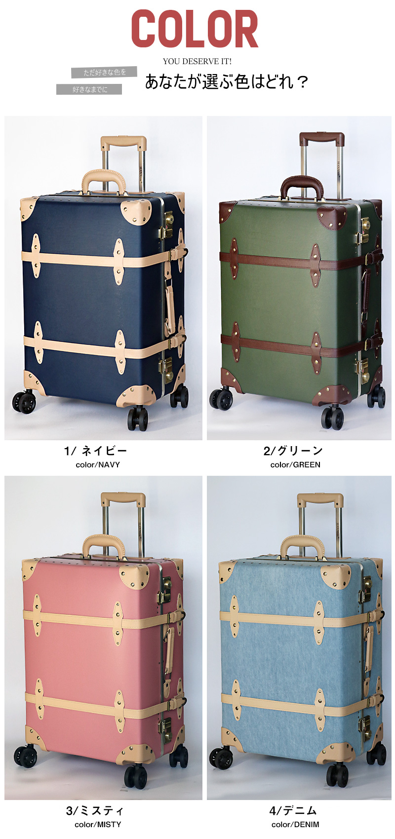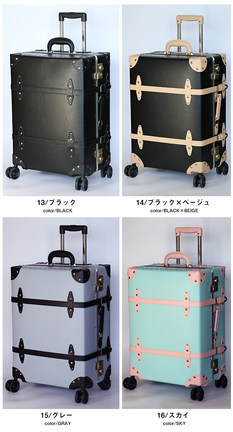 このトランクキャリーは、ヴィンテージ感あふれるアンティークデザインが特徴でありながら、従来モデルよりも強度を向上させた上位機種です。