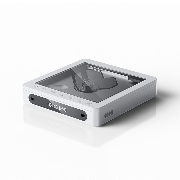 144×137×27mmのコンパクトなボディに、ESP電子防振機能を搭載。持ち運び時やデスクトップでの再生時も安定した音楽再生を実現します。アルミニウム合金ボディは質感と耐久性を兼ね備え、ヒンジ部分には精密加工されたアルミニウム合金部品を採用しています。