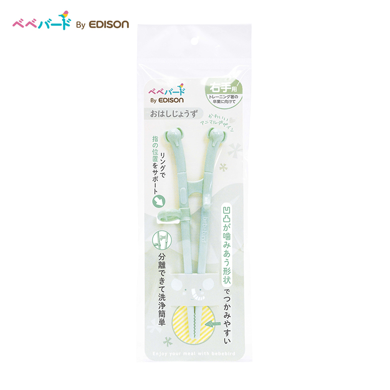 EDIMOTTO おはしじょうず ベベバード 【ゾウ】 エジソンのお箸 トレーニング箸 右手用 ぞう グリーン 矯正用箸 エジソン箸 ベビー食器 練習 練習用箸 入園入学
