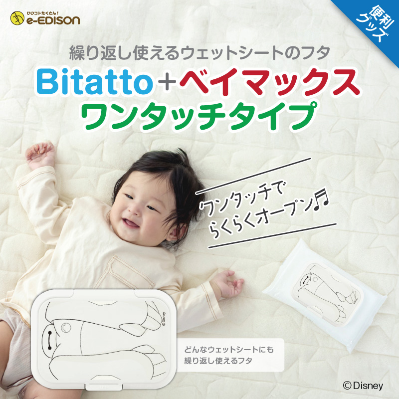 EDISONmama Bitatto+ ディズニー 【ベイマックス】 ウェットティッシュのふた ワンプッシュタイプ 繰り返し使える ワンタッチ おしりふき フタ 抗菌 清潔 必須品