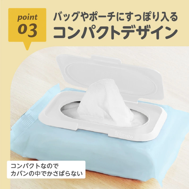 ・おしりふきやお手拭き汗拭きシートなど貼ってはがして何回でも繰り返し使える