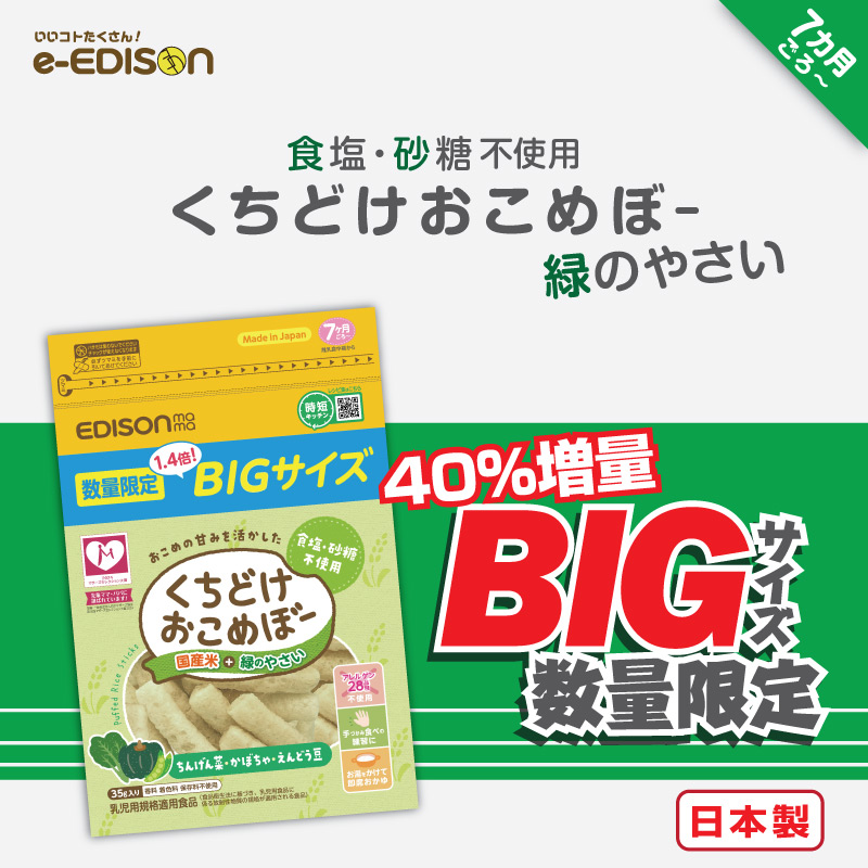 【期間限定・数量限定販売!】 40%増量 くちどけおこめぼー 緑のやさい 離乳食 7ヶ月 離乳食中期 赤ちゃん お菓子 おやつ 国産米 おせんべい エジソンママ 35g