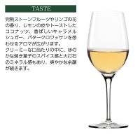 | 完熟ストーンフルーツやリンゴの花の香り、レモンの皮やトーストしたココナッツ、香ばしいキャラメルシュガー、バタークロワッサンを想わせるアロマが広がります。 クリーミーな口当たりの中に、ほのかな焼き菓子のスパイス感と火打石のミネラル感もあり、爽やかな余韻が続きます。 |