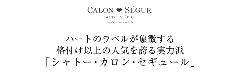 シャトー・カロン・セギュール(Chateau Calon Segur)は、ボルドー地方メドック地区サン・テステフに位置する格付け第3級の名門シャトーです。ワインラベルのハートマークは「我が心カロンにあり」と語ったニコラ・アレクサンドル・セギュール侯爵の言葉に由来しており、力強くも繊細なスタイルで豊かな果実味と長期熟成に耐える構成美を誇ります。