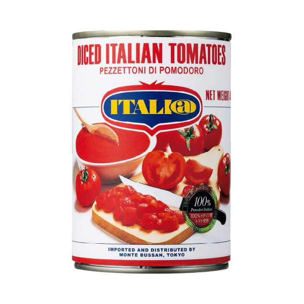 | イタリアの太陽の恵みをたっぷりと受けた完熟トマトを、使いやすいようサイコロ状にカット。切る手間と加熱時間の短縮を可能にした、利用範囲の広い缶詰です。 ホールトマトより短い調理時間で済み、サラダの彩りやピザのトッピングなど果肉の状態を少し残したい料理にも最適。 完熟トマトの甘さが味わえるので冷製パスタにもピッタリです。 ※ブランド名がイタリアットへ変更になりました。(旧モンテベッロ) |
