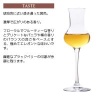 | 琥珀色に近い透き通った黄色。 濃厚で広がりのある香り。 フローラルでフルーティーな香りとデリケートなバニラや樽の香りのバランスの良さをベースとする、極めてエレガントな味わいです。 繊細なブラックベリーの印象が余韻に残ります。 |