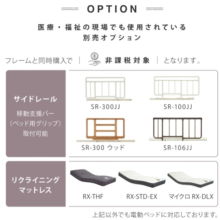 | 2モーター 背脚連動・独立可動 | 3モーター 背脚連動・独立可動 上下昇降 | |