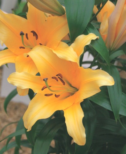 「ユリ バルベルデ」は、アプリコットイエローのOT(オリエンタル×トランペット)ハイブリッドリリー。