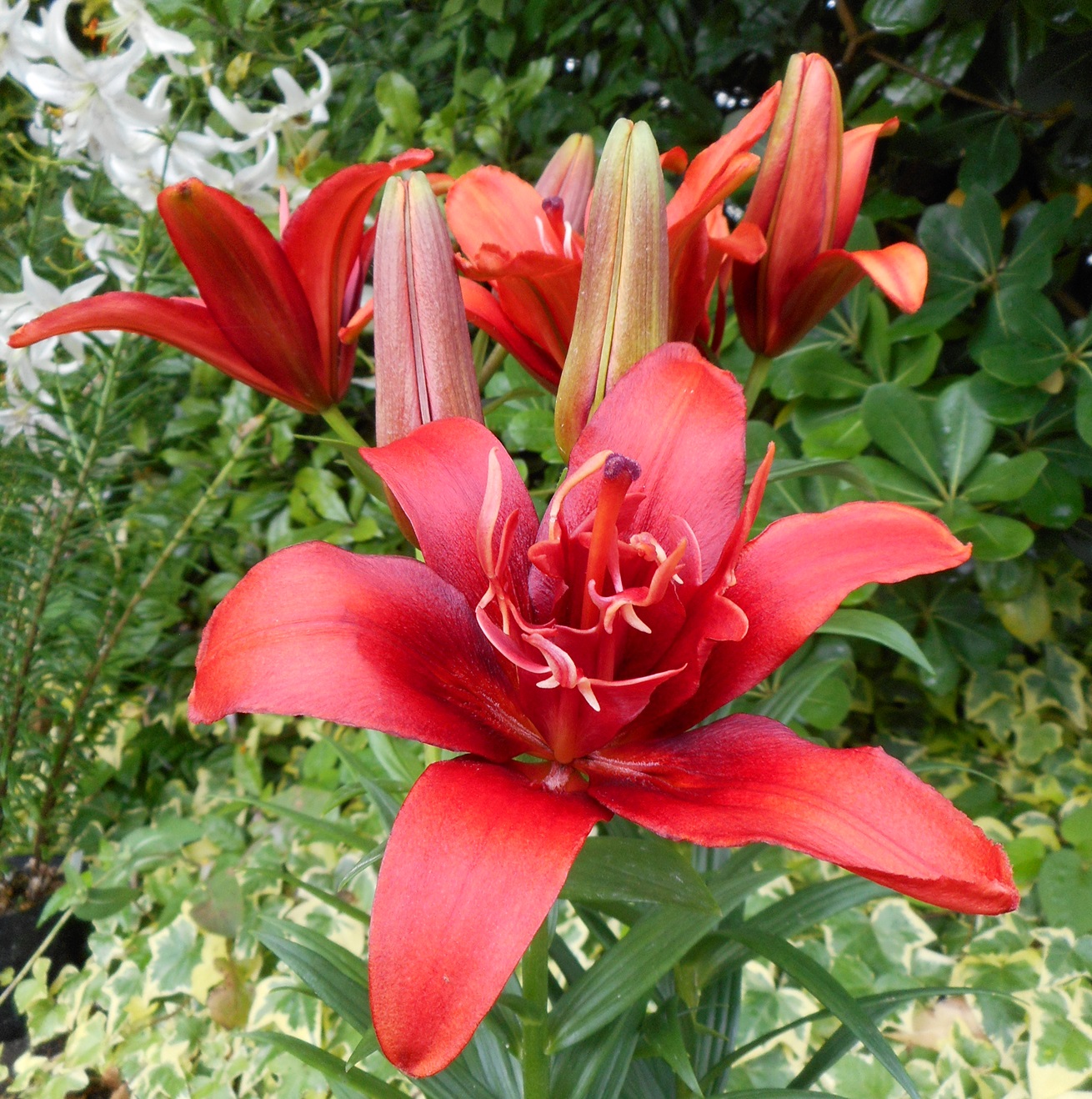「ユリ レッドツイン」は、鮮やかなオレンジレッドの八重咲きアジアテイックリリー。