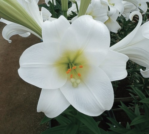 「ユリ カルピーノ」は、テッポウユリのような純白色のロンギフロルムハイブリッドリリー。