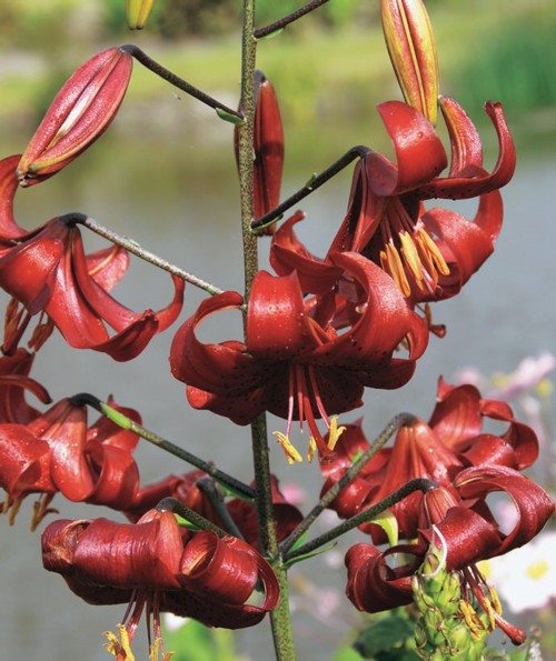 「ユリ レッドベルベット」は、ビロードのように滑らかな暗赤色のタイガーリリー。