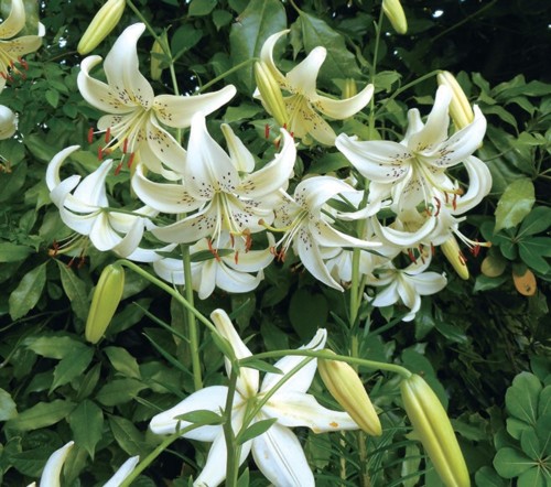 「ユリ スイートサレンダー」は、黒色のスポットがそばかす状に入るクリーミーホワイトのタイガーリリー。