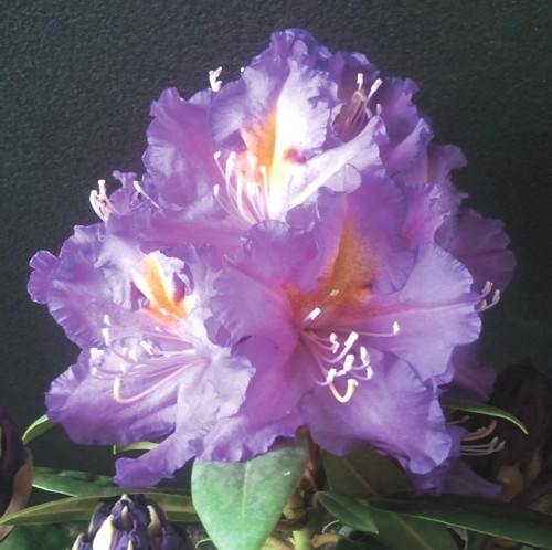 「シャクナゲ ラベンダースノー(PVP)」は、クリーム底白の淡ラベンダーピンクから白の中輪花。4月上旬に開花する早咲き品種。庭植え向き。