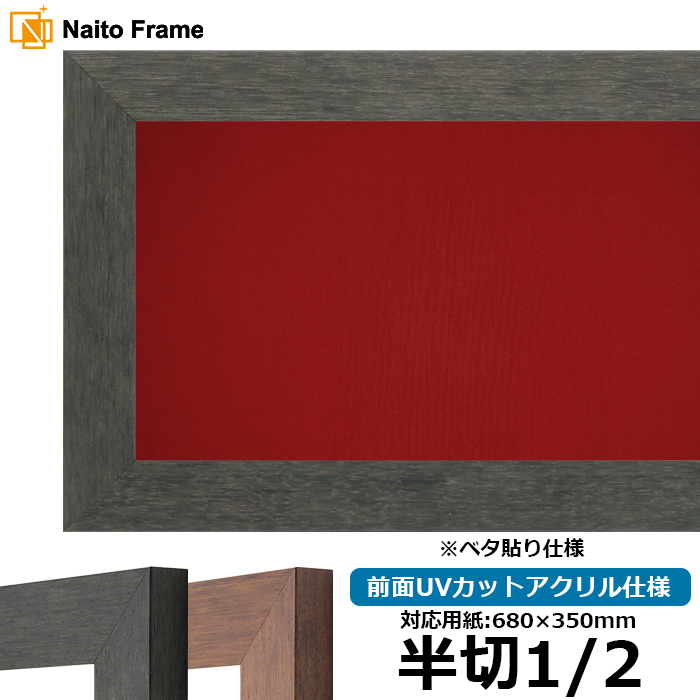 書道額 4934 書道半切1/2(680×350mm) ブラック(BLE)/ブラウン(DBW) 前面UVカットアクリル仕様 ※ベタ布貼り仕様