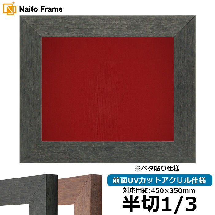 書道額 4934 書道半切1/3(450×350mm) ブラック(BLE)/ブラウン(DBW) 前面UVカットアクリル仕様 ※ベタ布貼り仕様