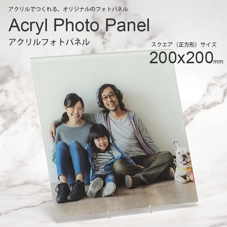 アクリルパネル フォトパネル 正方形(大)200×200mm スタンド台座付き 写真パネル/フォトフレーム/アートパネル/記念写真/家族写真/ペット/オーダー