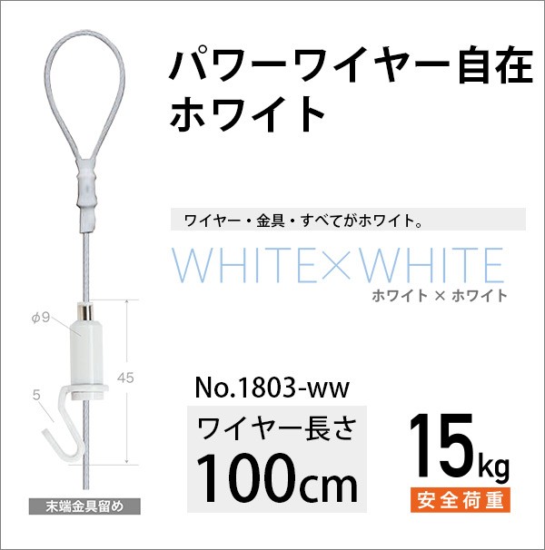 ピクチャーレール用 パワーワイヤー自在/ホワイト 100cm No.1803-WW 福井金属工芸