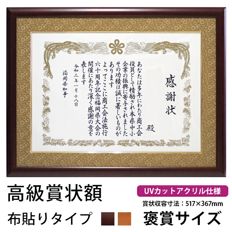 木製高級賞状額縁 433/5021 褒賞(517×367mm) ※B3兼用 UVカットアクリル仕様 布マット付き(面金付き)
