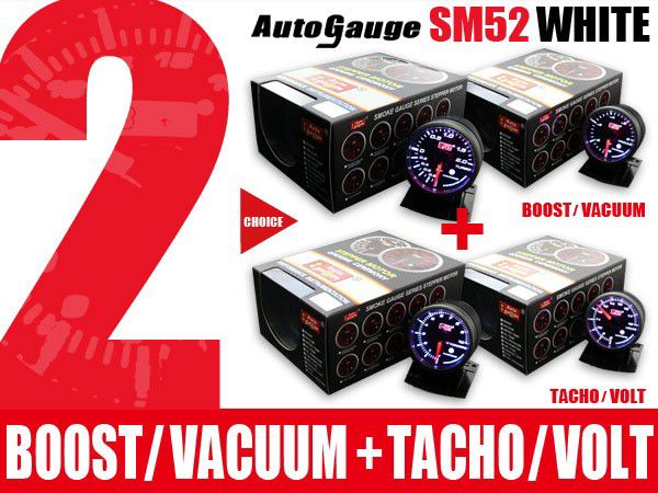 オートゲージ 2点セット ブースト/バキューム計+タコメーター/電圧計 SM52Φ ホワイトLED メーターフード付