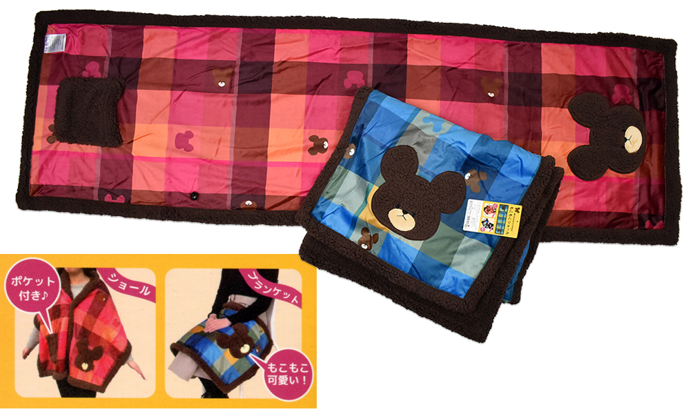 the bear's school もこもこショールひざ掛け毛布ロングサイズ160cm ジャッキーカラーのシープ調マイクロボアとブロックチェックをプリントしたかわいらしいデザインです。もこもこした肌ざわりは、お子様にも喜んでいただける素材です。安心の西川品質。折りたたんで膝にかけたり、肩から掛けたり等々。横長ロングのショールは、いろいろな用途にお使いいただけます。●室内で肌寒いときにお使いください。ポケットが付いているので小物が入れられて便利です。「くまのがっこう」は山の寄宿舎で暮らす12ひきのくまのこたちの日常を描いた日本発の絵本シリーズのブランドです。 … /サイズ:160×48cm、Made in China/生地・素材:ポリエステル100%、表/転写プリント・スエード調、裏/マイクロシープ調ボアフリース/:バスケットボタン1、フリースポケット1、ジャッキーアップリケ1、