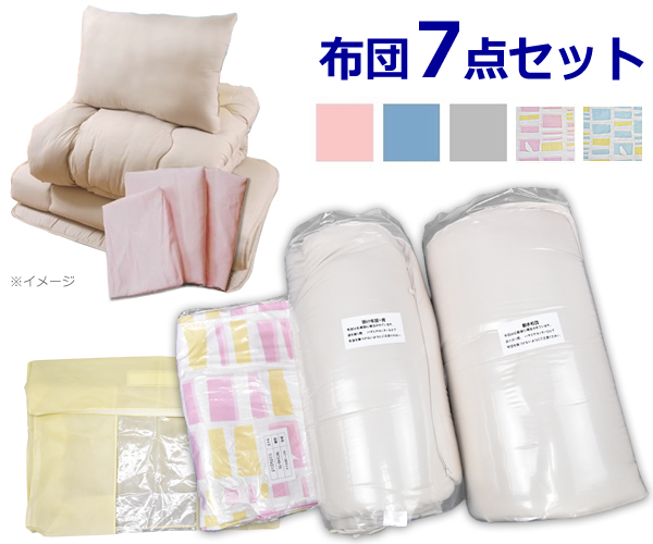 掛ふとん・敷ふとん・枕+カバー3点セット、収納袋付き