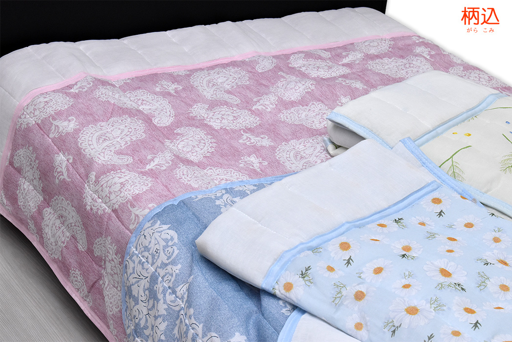 柄込 綿ガーゼキルトケット(肌ふとん)シングル
