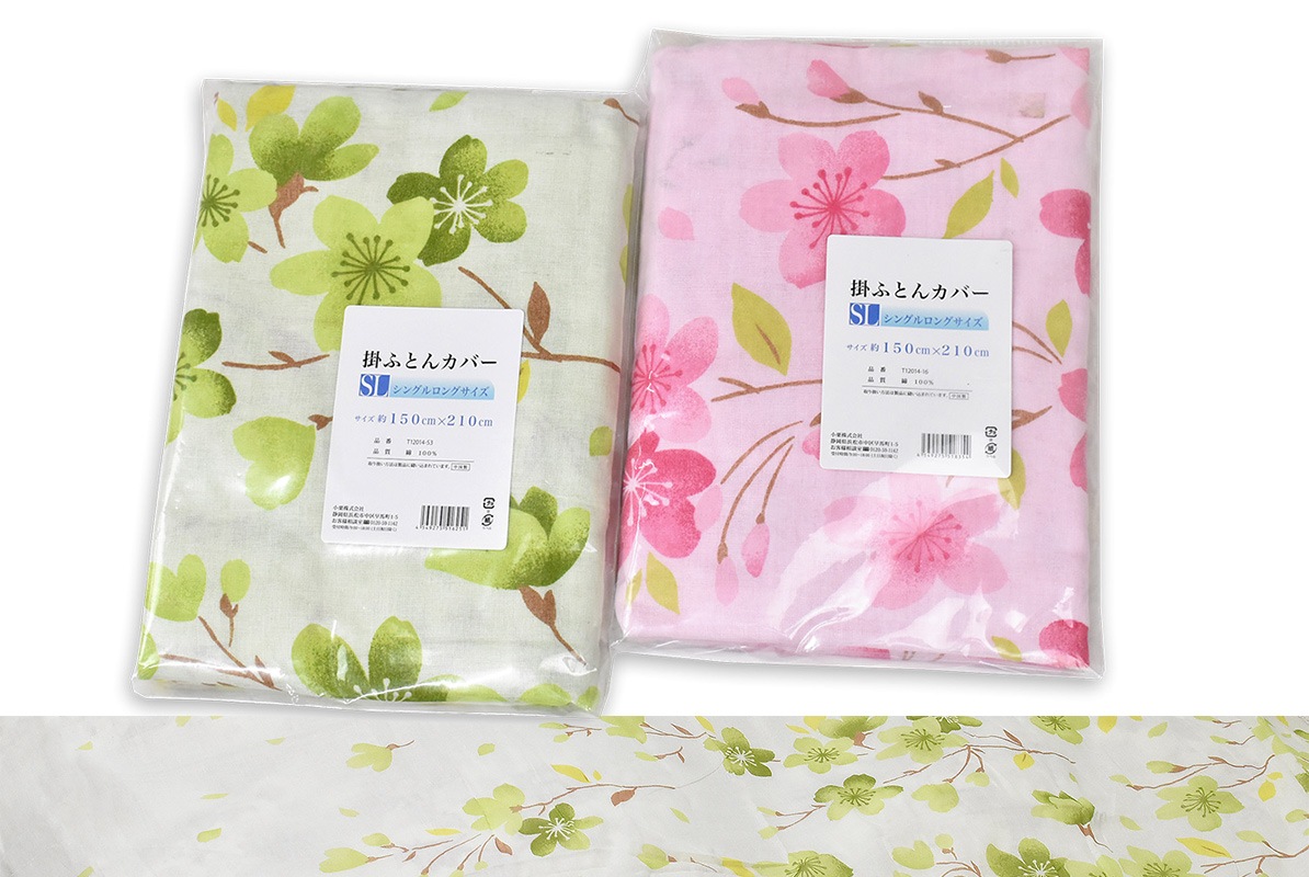 プリント・ガーゼ掛ふとんカバー シングルSL、 綿100% 梅うめ