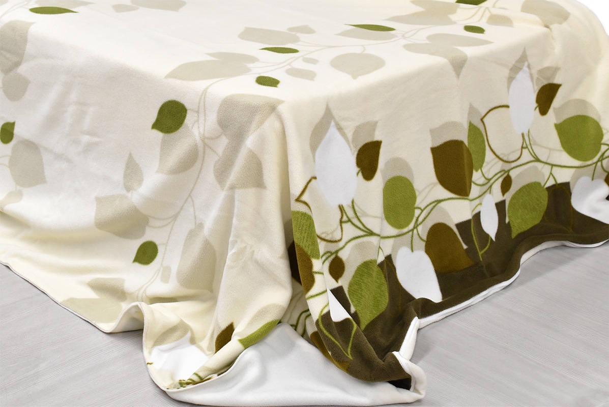 リーフ柄フリースこたつカバー 正方形 GN 200×200cm