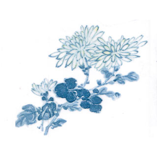 素焼き素地に転写紙を置き、その絵柄の上をダミ筆に水を含ませたもので軽く叩き込みように素地に絵柄が刷り込むまで行います。その後、透明釉を掛け焼成します。