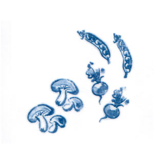 素焼き素地に転写紙を置き、その絵柄の上をダミ筆に水を含ませたもので軽く叩き込みように素地に絵柄が刷り込むまで行います。その後、透明釉を掛け焼成します。
