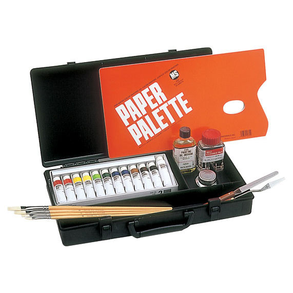 ホルベイン オリジナルのアタッシュケースに、必要な絵具や道具がセットされています。