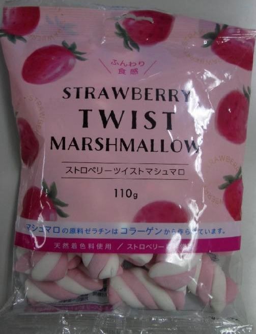 ふわふわ食感のマシュマロ、いちご味です。ツイストタイプで見た目にも楽しい商品です。