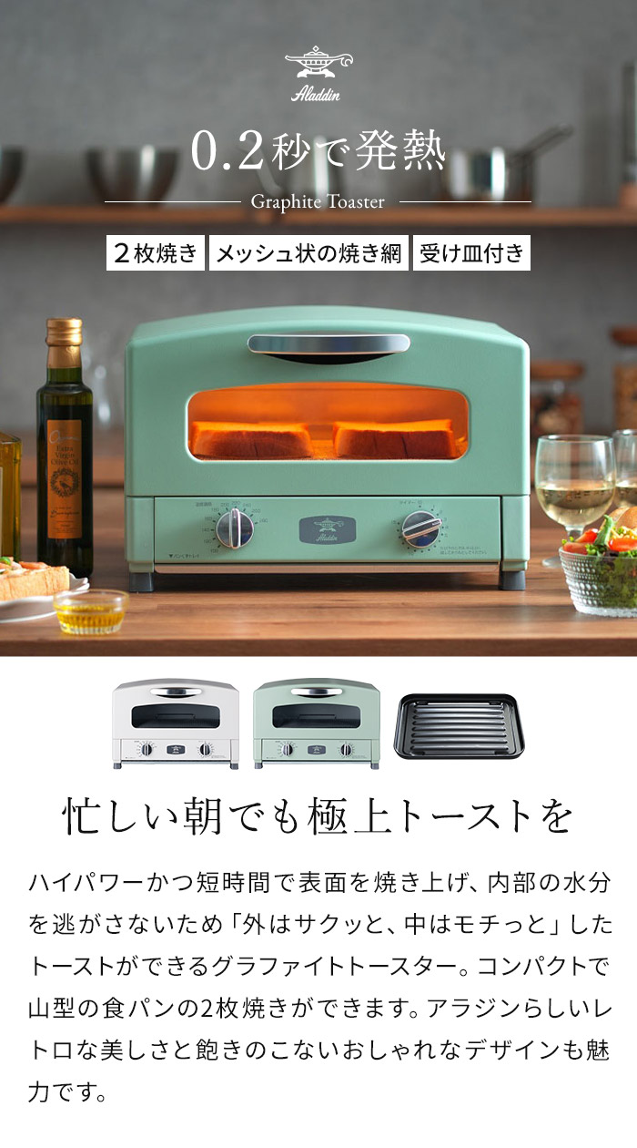 | キーワード アラジン トースター 2枚焼き 2枚 小型 Aladdin オーブントースター ホワイト グリーン おしゃれ ハイパワー 焼き網 北欧 時短 高温 レトロ 小さい かわいい 人気 パン ギフト AET-GS13B-W | |