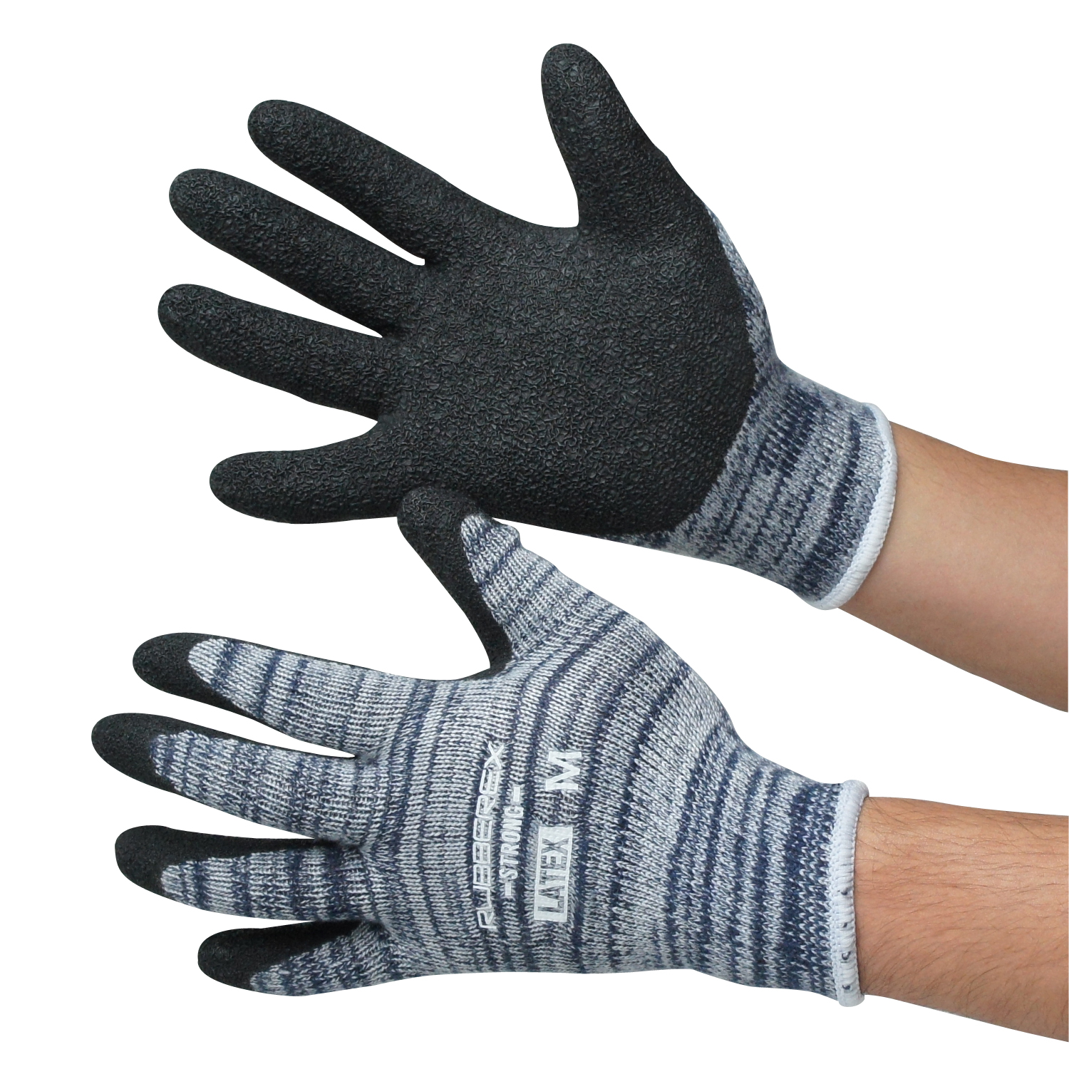 10ゲージの厚手の手袋に天然ゴムをコーティングしました。おしゃれな杢ネイビーの背抜き手袋です。