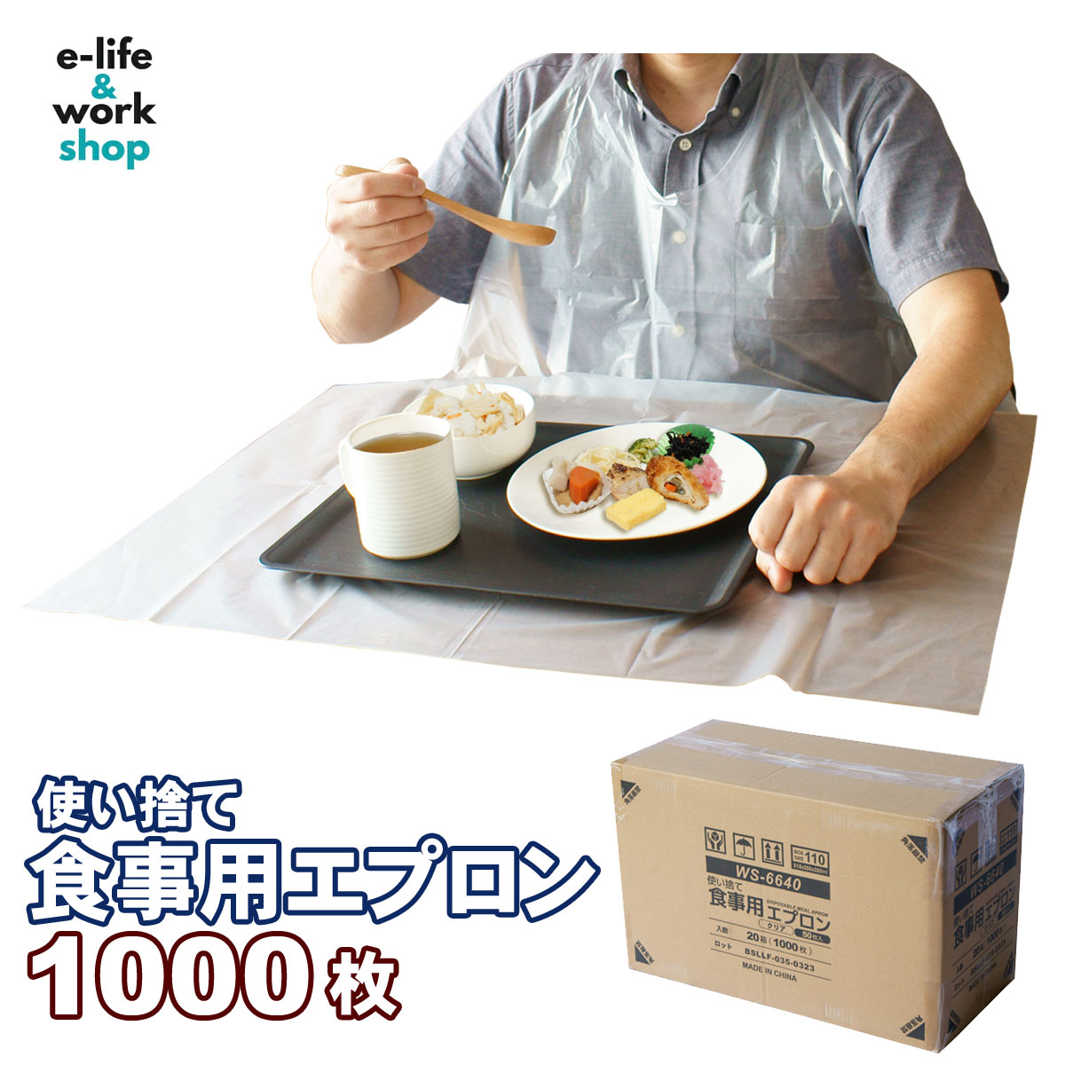 食事エプロン 介護 大人用 使い捨て クリア 1000枚 50枚入り×20箱 フリーサイズ 袖なし 紐 輪っか 簡易エプロン ディスポエプロン まとめ買い