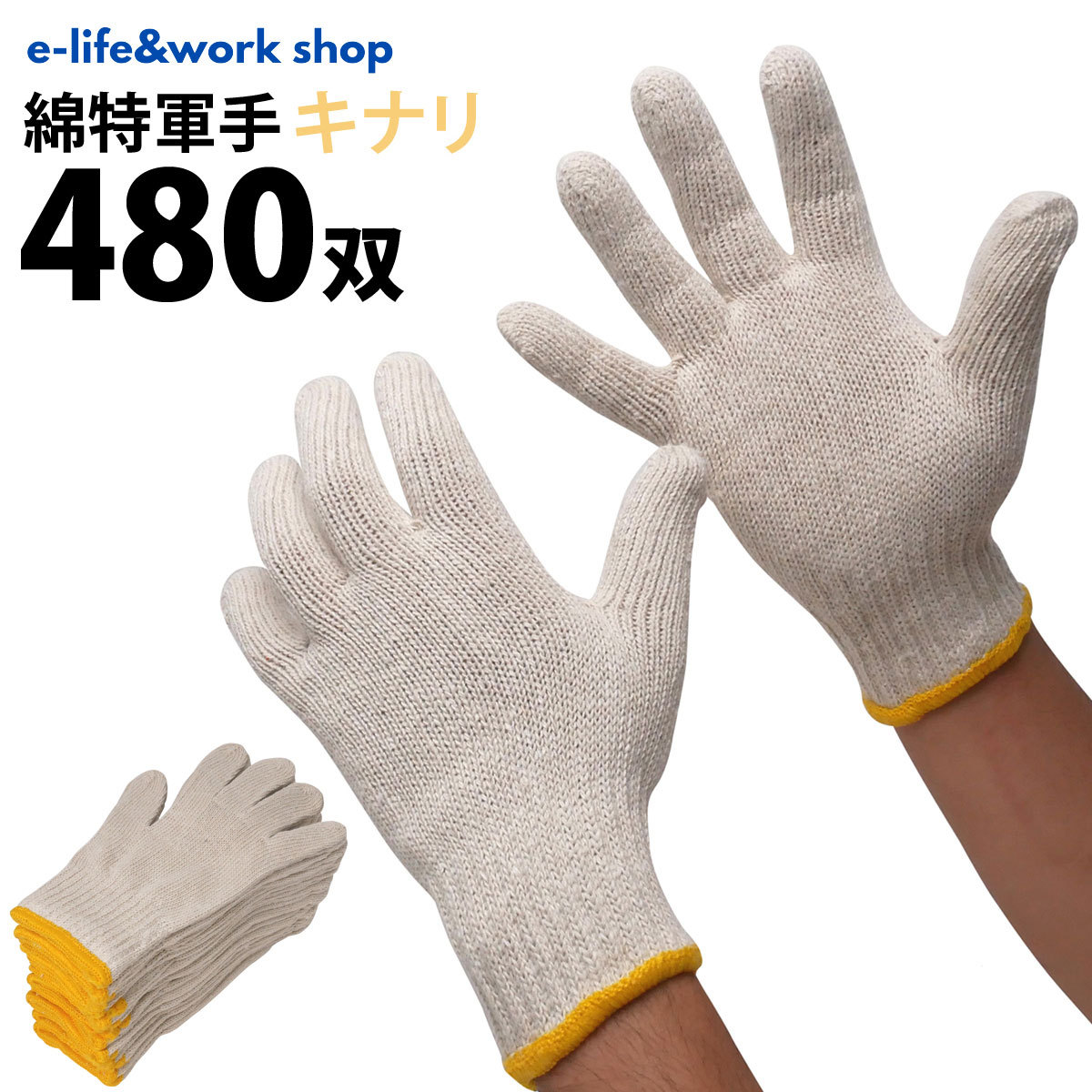 法人限定 綿特軍手 480双 2本編 600g 40ダース 特紡軍手 作業手袋 キナリ 綿色 防災 災害対策_001.1110-40