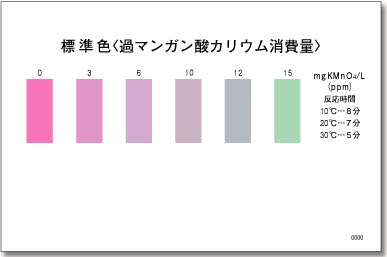 ●パックテスト 過マンガン酸カリウム消費量の標準色です