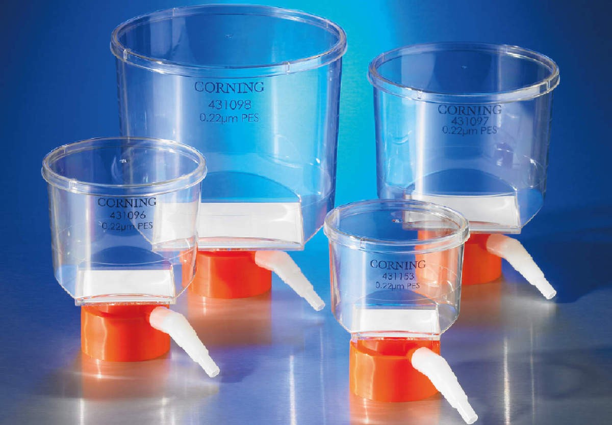 ●市販のポリスチレン製の培地用ストレージボトルねじ規格:33mmと45mm(広口)のボトルにセットして溶液を直接ボトルへ濾過することができます。