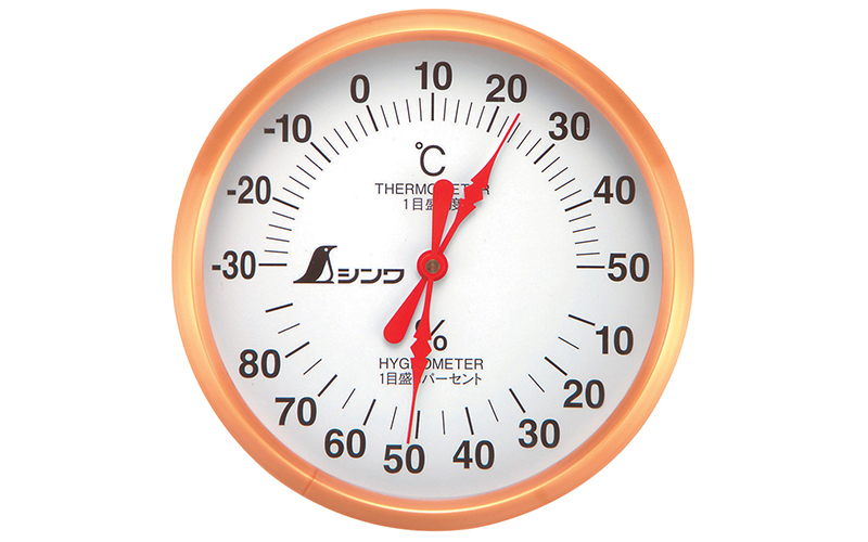 ●温度と湿度を同時に測定でき、健康管理や省エネに役立つアナログ温湿度計です