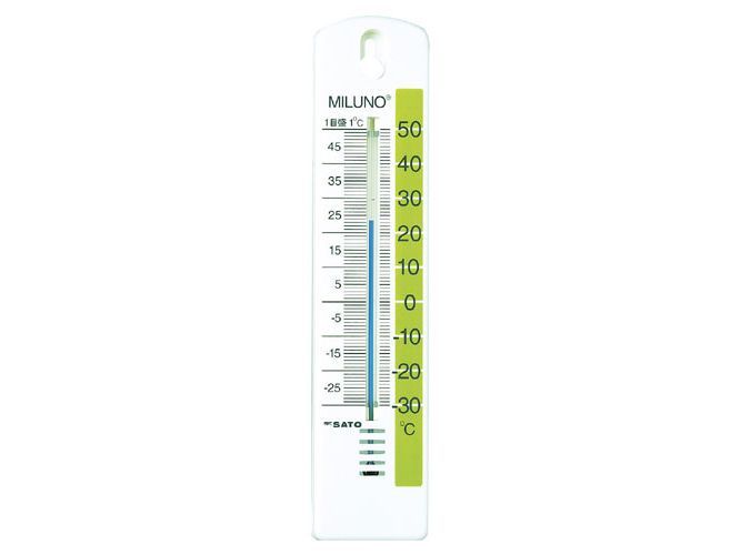 \ポイント5倍/ 佐藤計量器 1516-30 カラー寒暖計ミルノ グリーン 縦型
